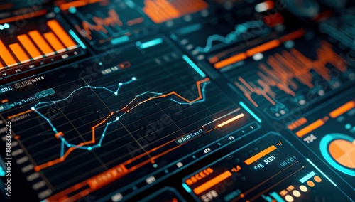 Orange and blue technology background circuit board and code. 3d Illustration Orange, blue technology background. AI generated illustration