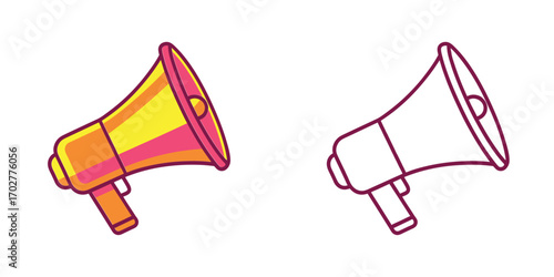 Orange and pink megaphone icon with outline for announcements and communication vector