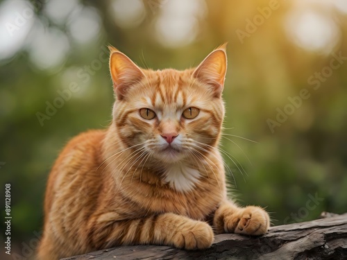 orange cat with blur background, orange cat is sitting and looking