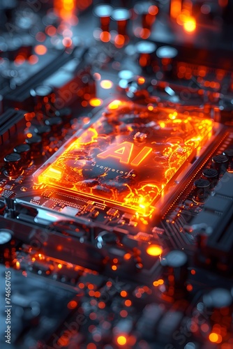 Orange Flames engulf Computer Chip in Realistic Anamorphic Art
