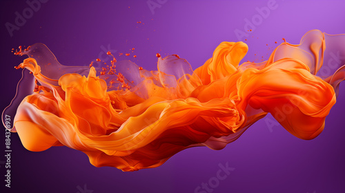 Orange Fluid Paint Drained on Purple Background, Abstract Image, Texture, Pattern Background, Wallpaper, Smartphone Cover and Screen, Cell Phone, Computer, Laptop, 9:16 and 16:9 Format