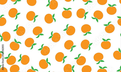 Orange Fruit Seamless Pattern with Green Leaves on transparent Background