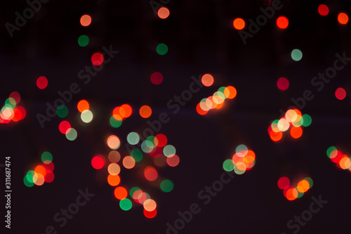 orange, green, red, yellow and gold bokeh on a black background