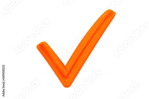 Orange hand-drawn checkmark indicating validation, floating on transparent surface, perfect for digital graphic design projects