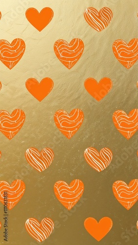 Orange Heart pattern hand drawn design on Gold background illustration