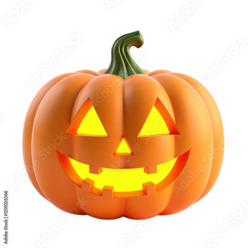 Orange Jack-o'-lantern with green stem and triangular eyes on a transparent background