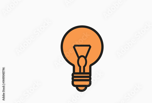 Orange Lightbulb Idea Icon with Black Outline on a White Background Design