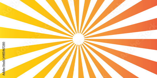 Orange swirling pattern background with Vortex starburst spiral twirl strips. Spiral striped illustration sunray template wallpaper, cover, poster, flyer design. Classic vintage sun rays pattern.