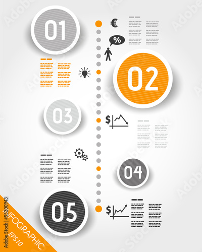 orange timeline with business icons