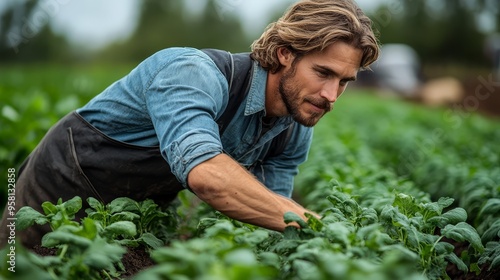 Organic farmer holding a basket of freshly picked produce, smiling proudly in a field