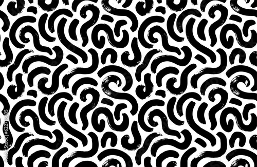 Organic irregular bold lines seamless pattern. Vector wavy brush strokes ornament. Abstract background with maze or puzzle motif. Messy doodles, bold curvy lines illustration, squiggle smears.