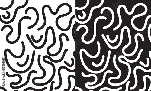 Organic irregular bold lines seamless pattern. Vector wavy strokes ornament. isolated on white and black background. Vector illustration. EPS 10