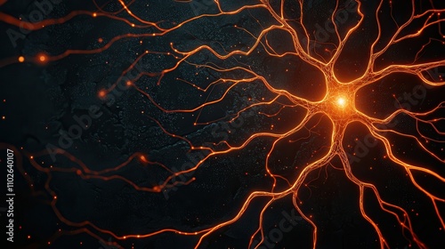 Organization structure and mission, A vibrant depiction of neural connections, showcasing intricate patterns of glowing orange neurons against a dark background.