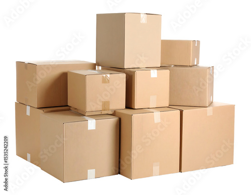 Organized Stack of Brown Cardboard Boxes on Transparent Background