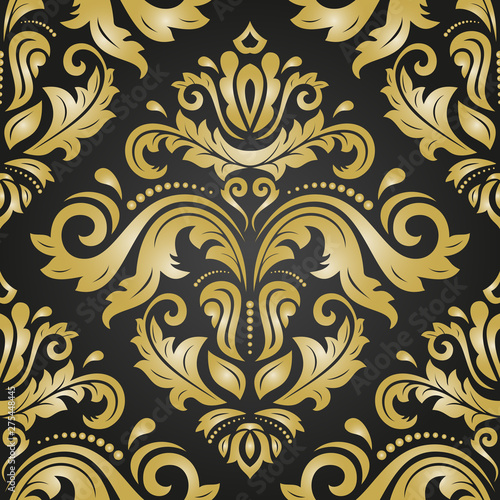 Orient classic pattern. Seamless abstract background with vintage elements. Orient black and golden background