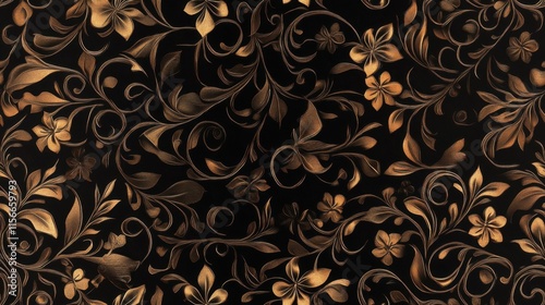 Ornate Bronze Floral Damask Pattern Background