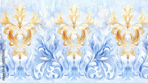 Ornate decorative border, watercolor style, light blue, gold accents