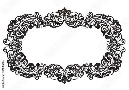 Ornate decorative frame with swirling floral elements forming an oval shape, isolated on a white background.