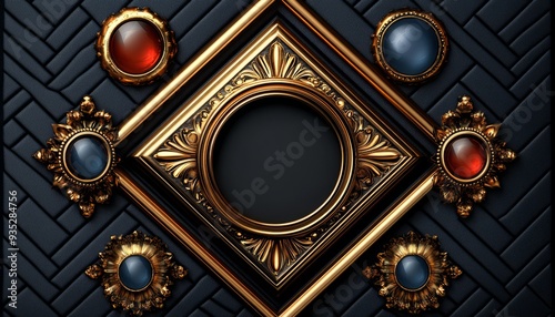 Ornate Gold Frames with Gems on a Black Background