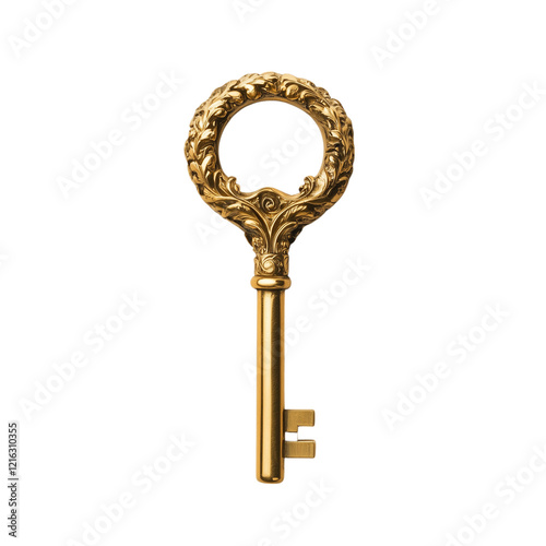 Ornate Gold Key with Decorative Design, Isolated on a White Background, Expressing Vintage Elegance Transparent Background