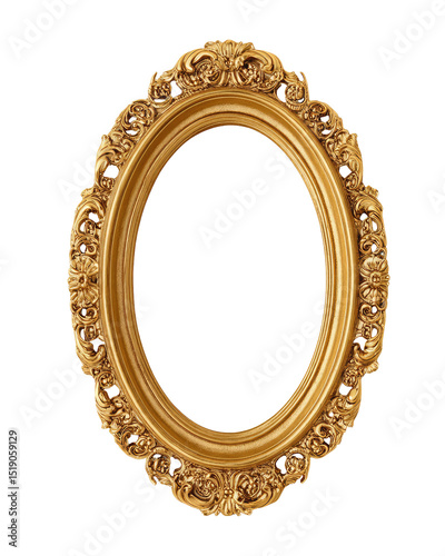 Ornate Gold Oval Picture Frame with Floral Details on transparent background