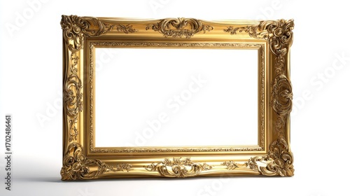 Ornate Gold Picture Frame on White Background, Perfect for Artwork Mockups and Design Projects