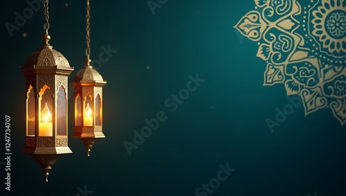 Ornate lanterns illuminate - Serenity and reflection - Religious holiday backdrop