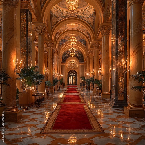 Ornate palace with symmetrical design and lights image