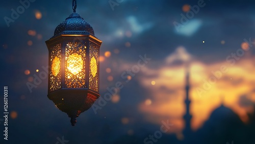 Ornate Ramadan Lantern Festive Night Glow Islamic Culture Elegant Design Background art