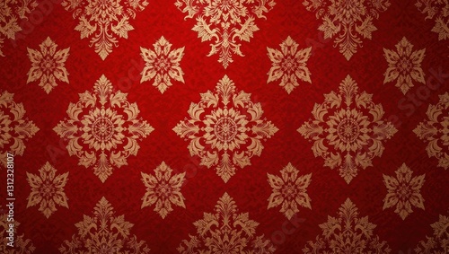 Ornate Red and Gold Decorative Pattern with Elegant Floral Motifs on Rich Background