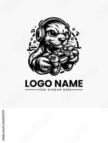Otter Gaming Mascot Cool Esports Vector Logo Playful Animal Gamer Illustration