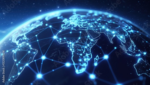 Our Interconnected World, A Vibrant Network Of Global Communication, Shown In A Glowing Blue Digital Art With Dark Space Background