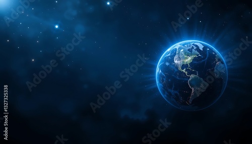 Our Vibrant Earth Glowing Brilliantly In The Vast, Dark Expanse Of Space, Bathed In Cool Blue Light And Encircled By Distant Stars
