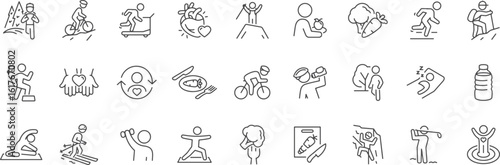 Outdoor Activity and Fitness Icon Set – Biking, Hiking, Camping, Yoga, Running, Sports, Adventure, Park Fun, Outdoor Icon