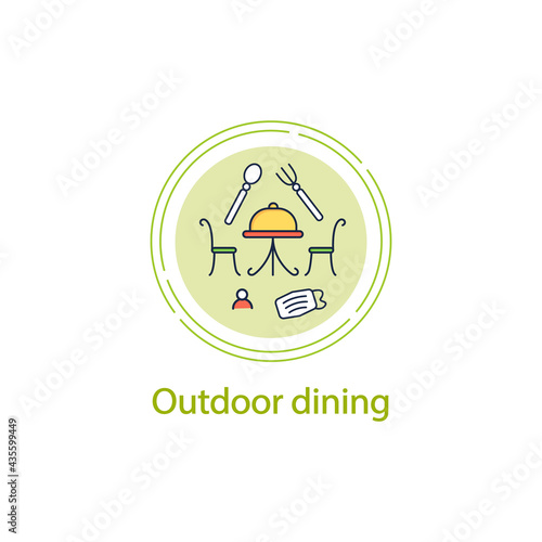 Outdoor dining concept line icon. Personal dinner in restaurant outdoor.Forced distance.Regulation through covid19. Restaurants new normal.Vector isolated conception metaphor illustration