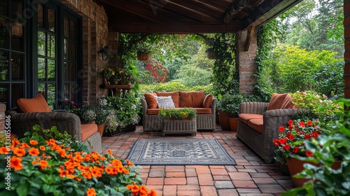 Outdoor Patio Serenity: A luxurious outdoor patio setting with comfortable seating and lush greenery create an inviting and tranquil space for relaxation.