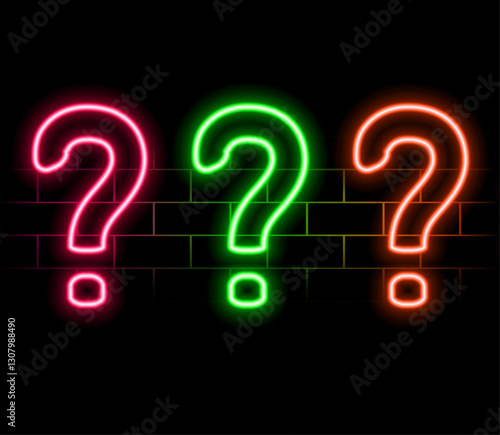 Outline 3 neon questions icon set. Glowing neon question marks, FAQ support, answer searching, questionnaire. Find problem decision. Unknown surprise, secret, mystery.
