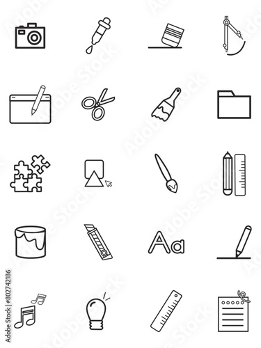 Outline and Solid Icons on White Background . Vector Isolated Elements, Business Card Icons, Artificial Intelligence & Machine Learning Icons — Monoline Series, Education Line Icons, Flag of world.