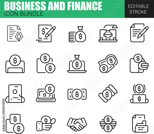 Outline Business and Finance Icon Set – Line Vector Icons for Web and Apps