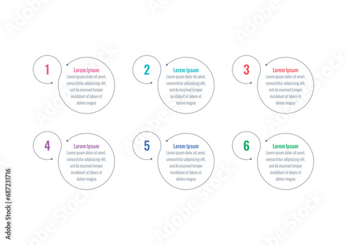 outline circles infographic template. six options infographic template. web, internet, annual report, education, magazine infographic template