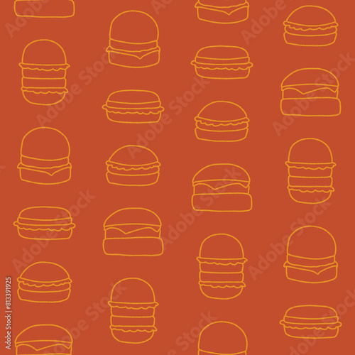 Outline Collection of Burger Seamless Pattern Vector illustration Design