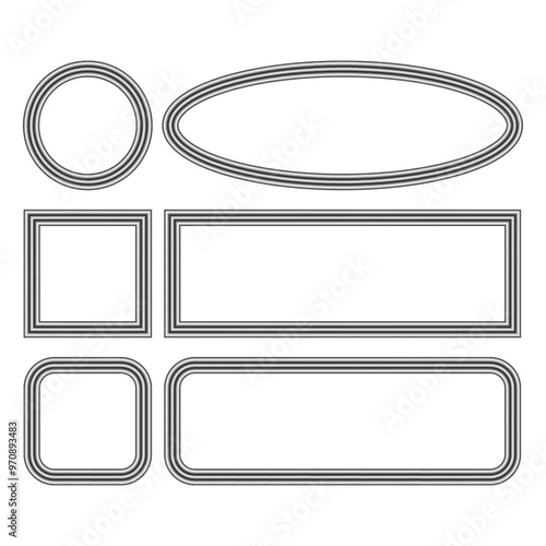 Outline frame collection. Geometric shape variety. Monochrome minimal style. Vector border set.