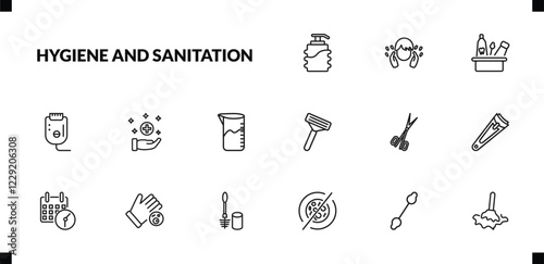 outline hygiene and sanitation icons set. editable linear face washer, hygiene kit, epliator, and other 12 icons in this category isolated on transparent background.