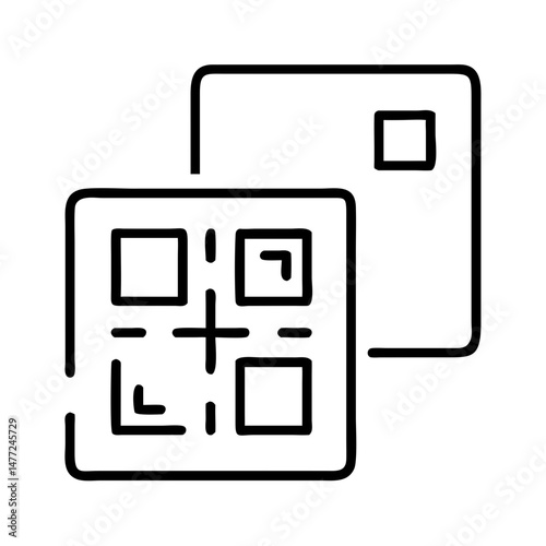 outline icon of layered QR codes in minimalist style, representing digital payments, secure transactions, smart finance and modern financial technology tools