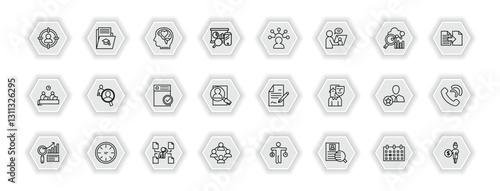 outline icons set - human resources concept. vector icons included target audience, emotional intelligence, skills, human resources and more.