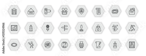 outline icons set - museum concept. vector icons included antic architecture, photographic, museum map, acrylic and more.