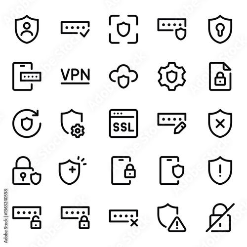 Outline icons set for Security.