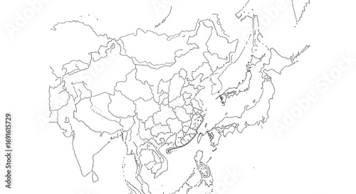 Outline Map of Asia Showing Countries and Borders