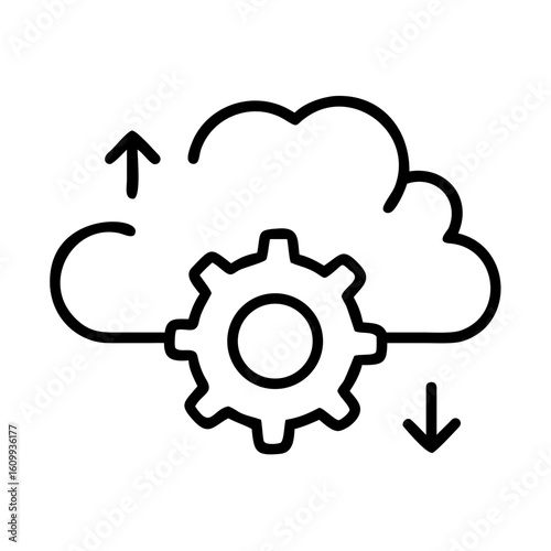Outline of a cloud with a gear inside and arrows pointing up and down around it