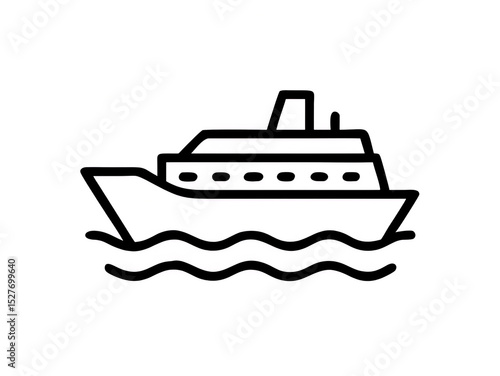 Outline of a cruise ship sailing on waves, simple design, nautical theme